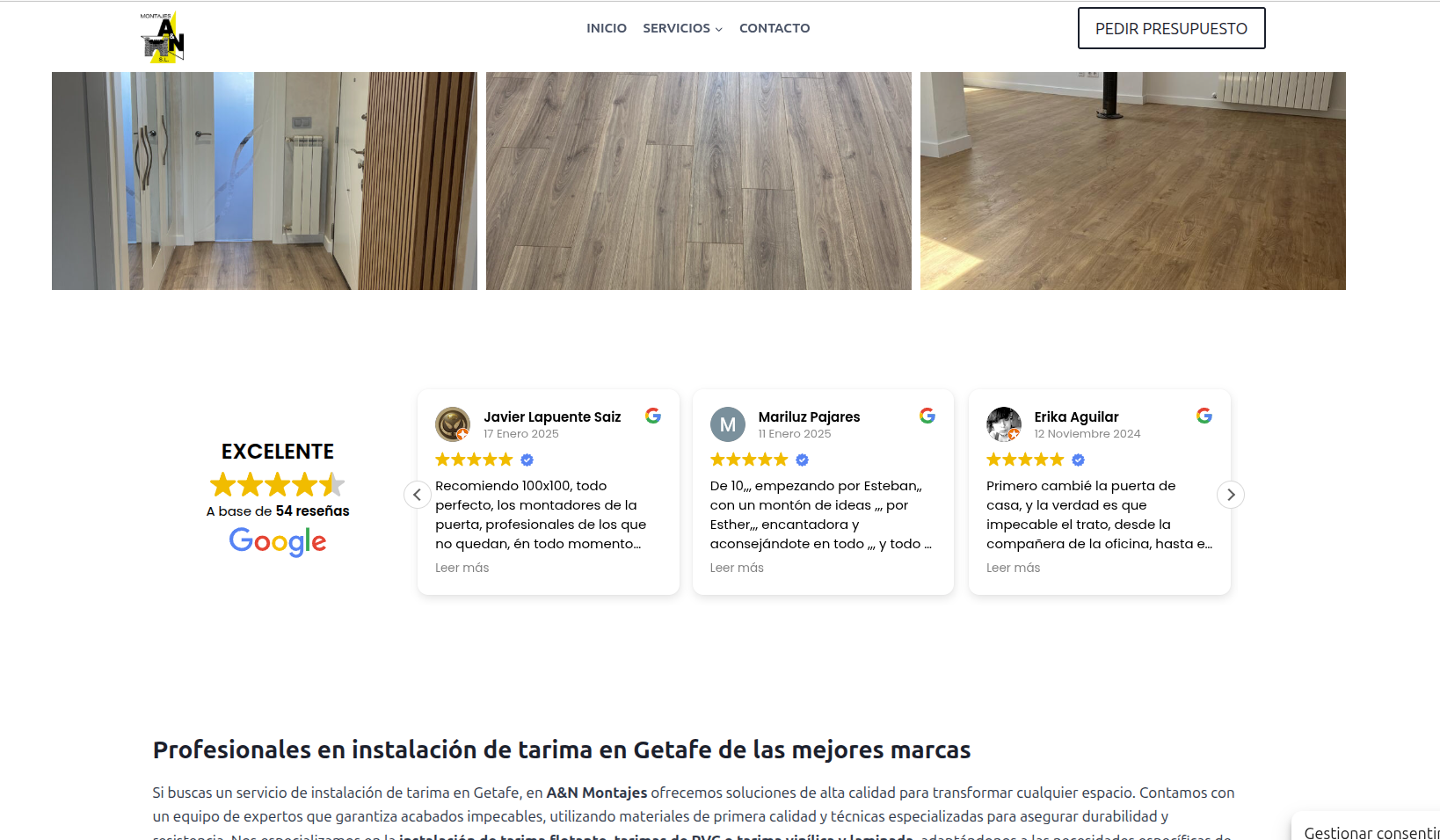 Diseño web para A&N Montajes: carpintería y mobiliario a medida en Madrid