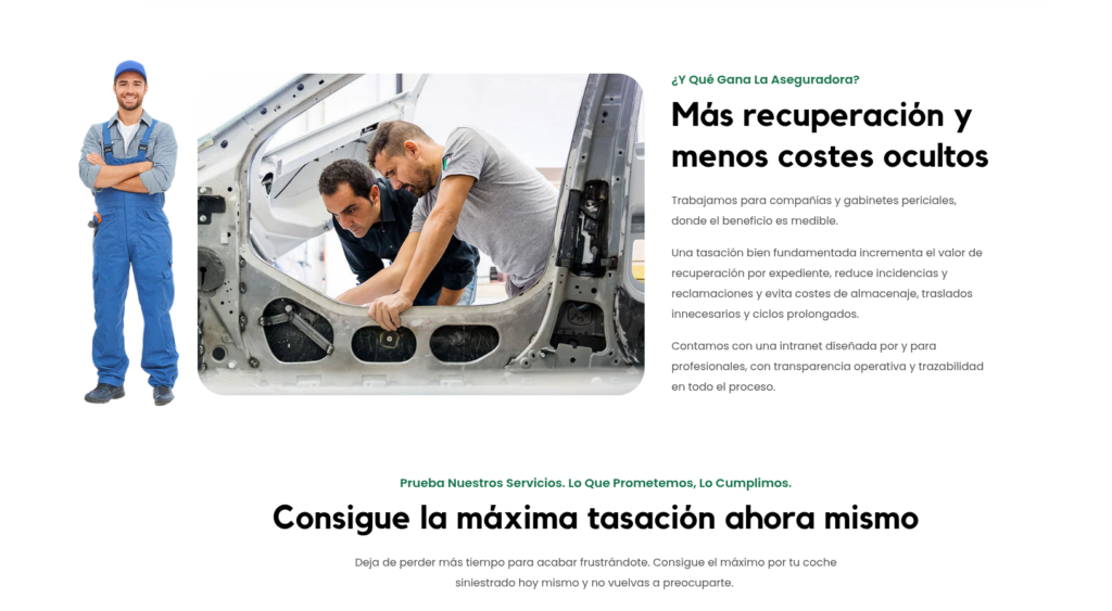 - Estructura preparada para posicionamiento SEO en búsquedas relacionadas con tasación y venta de vehículos siniestrados.