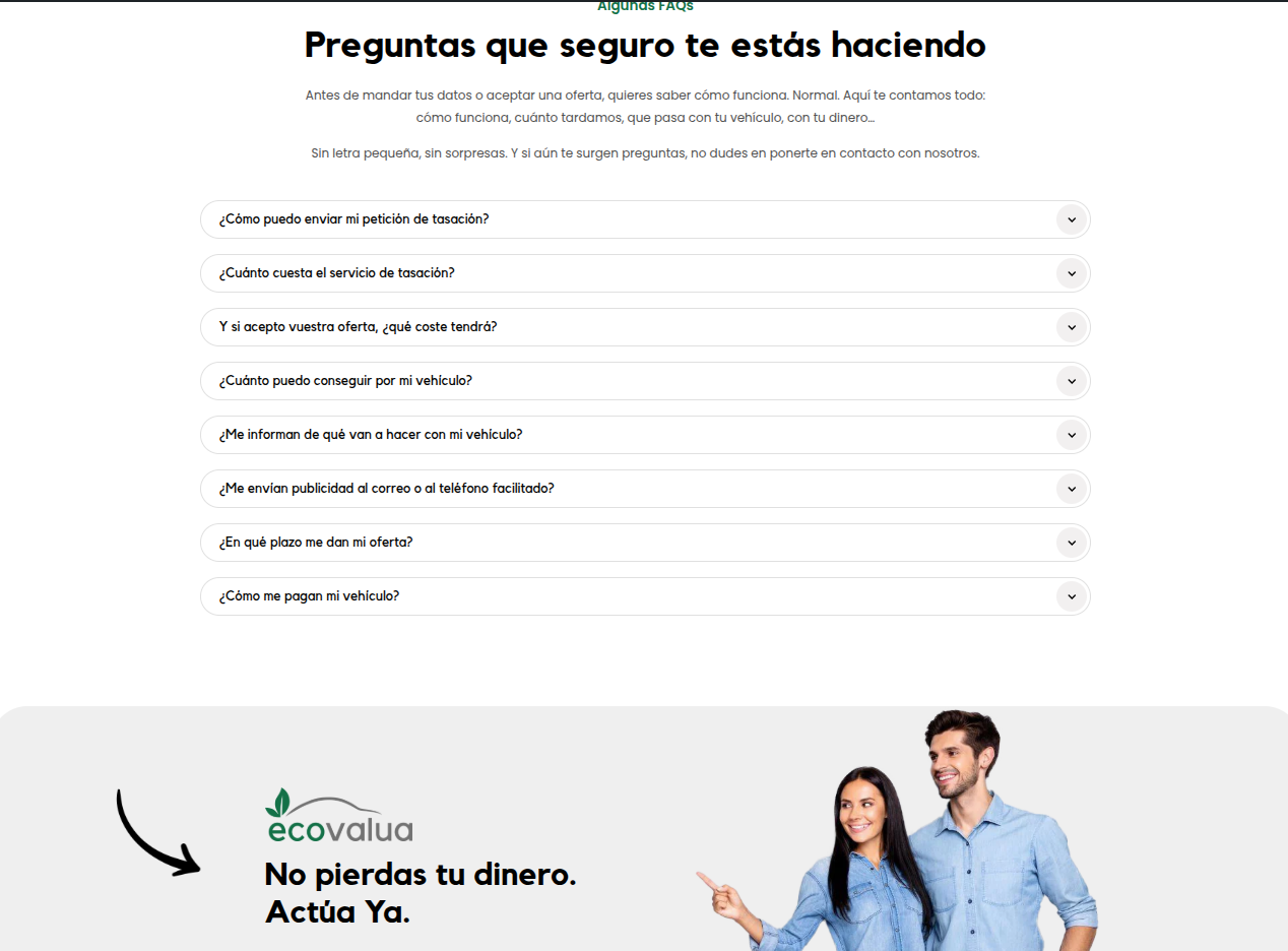 Diseño web para Ecovalua: tasación y venta de coches siniestrados