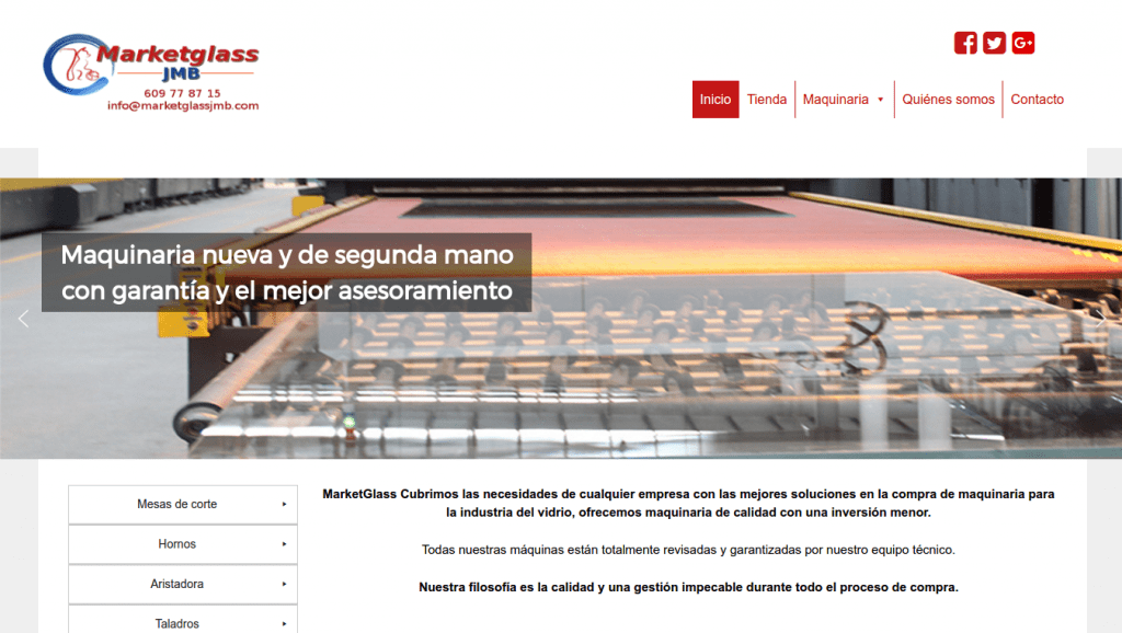 Empresa situada en Madrid, dedicada a la venta de maquinaria de primera y segunda mano. Proyecto consistente en el diseño de una página web tipo catálogo con fichas completas y descriptivas de maquinaria ordenada por categorías y la facilidad para solicitar presupuesto.